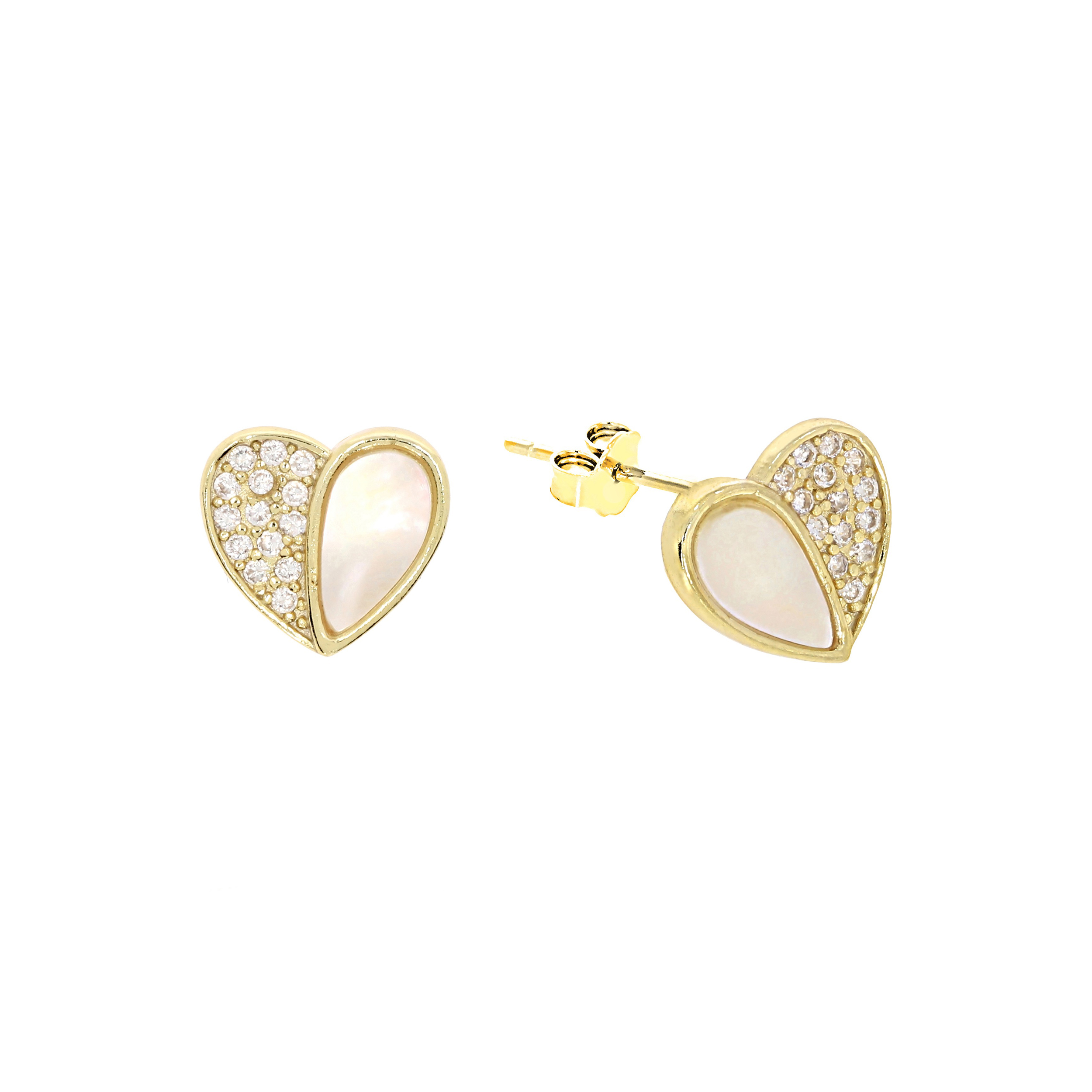 Gold plated sterling silver earrings with cubic zirconia and mother of pearl