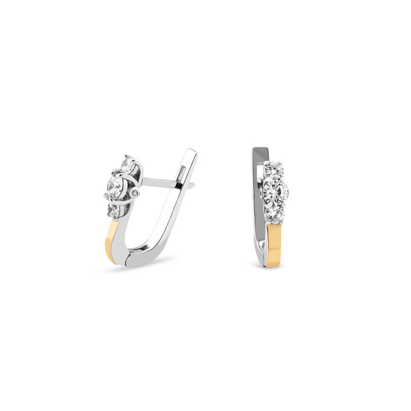 Sidabriniai auskarai su aukso plokštelėmis ir cirkoniu