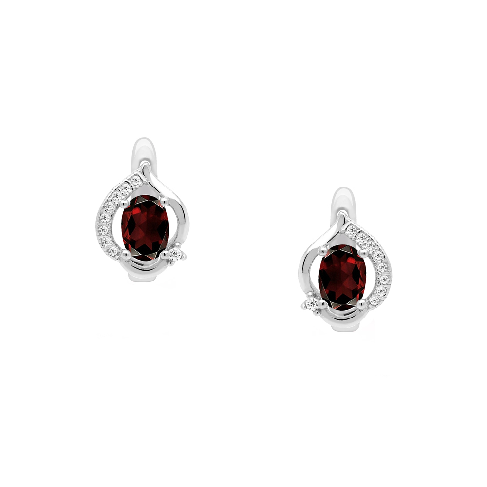 Sidabriniai auskarai su granatu ir cirkoniais. Angliškas užsegimas.
