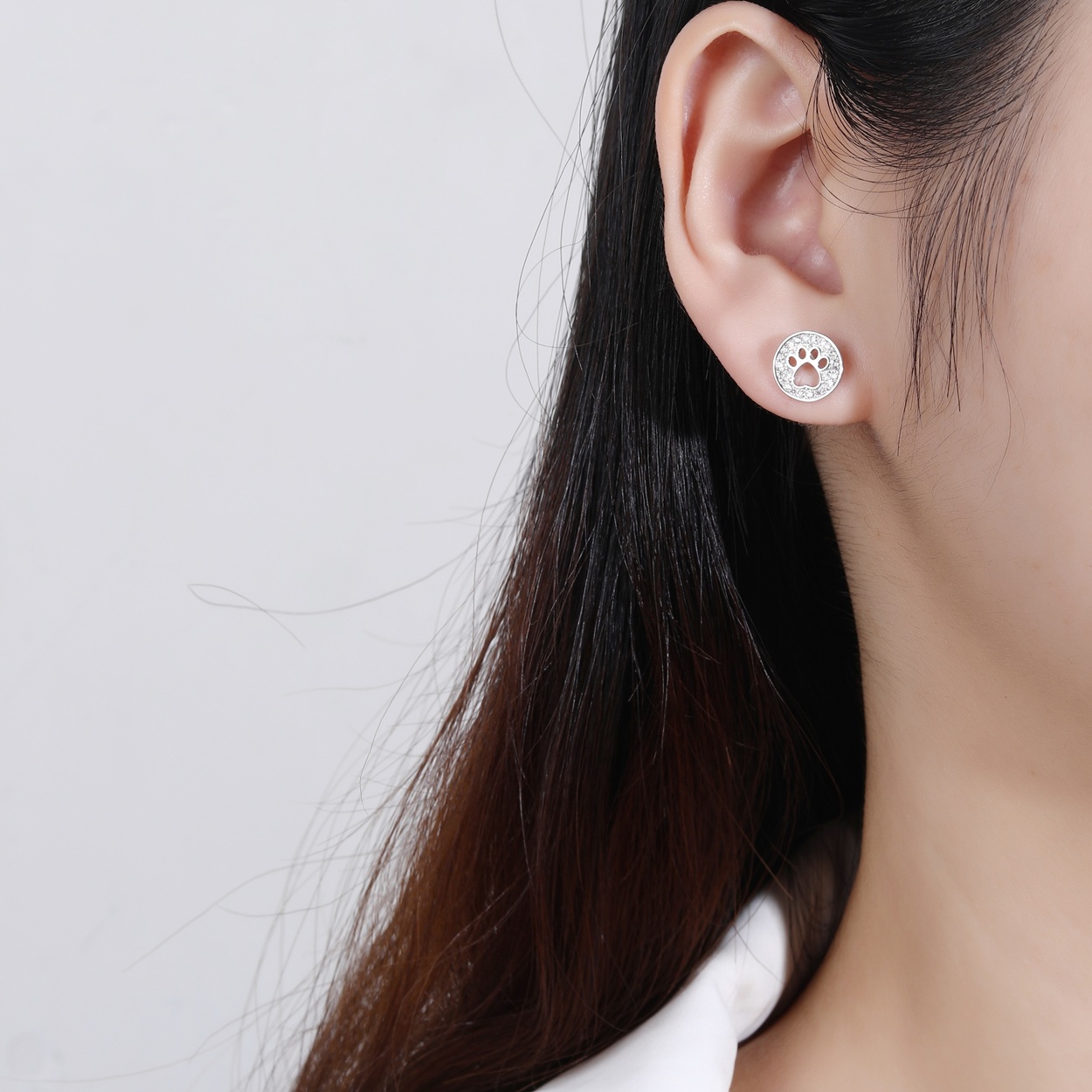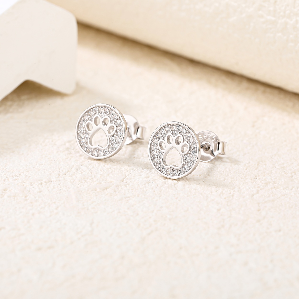 Sidabriniai auskarai su cirkoniais – šuniuko pėdutės